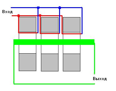 это три одновитковых транса с паралельными первичками и последовательными вторичками.