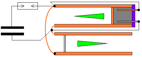 Да, зелёная стрелка на 1 рисунке - это порох давит, на втором - полезный ЭММ при разряде конденс.(Лоренц)