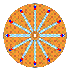 Т.е. при РАВНЫХ радиусах 8 грузов на внутреннем колесе будут в равновесии с 4-мя на внешнем.