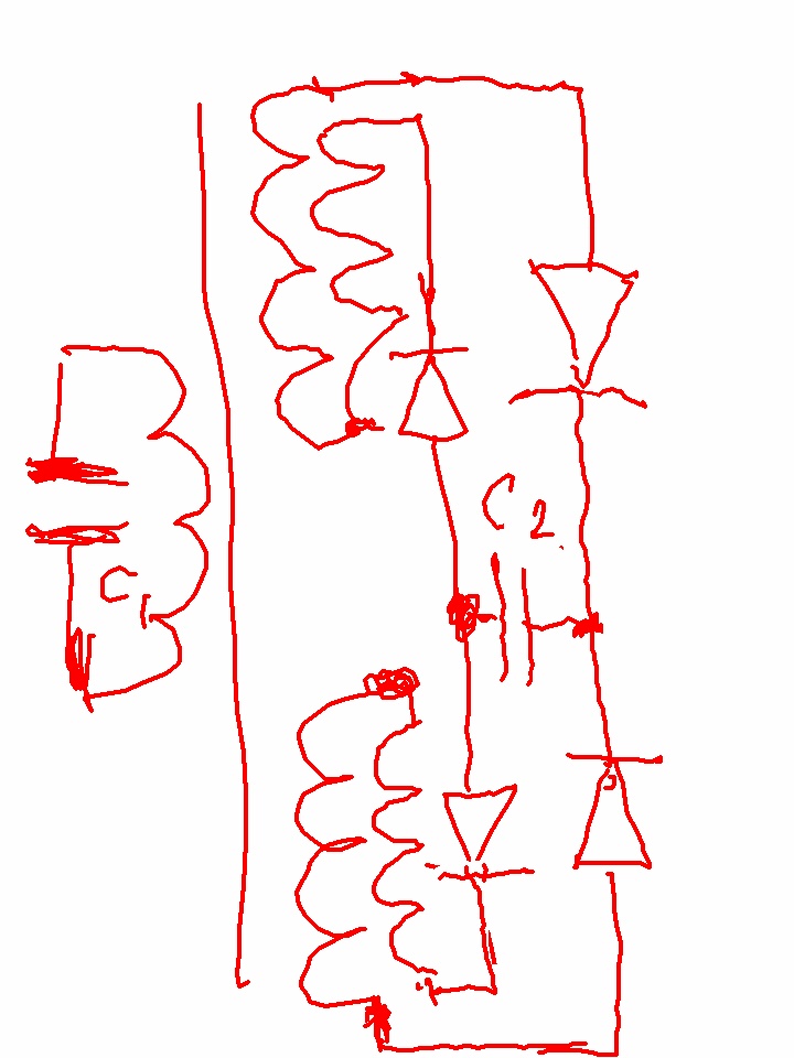 Два бифилфра купера со встречной намоткой дают разницу потенциалов:))ну а цепь „тока” заряда замыкается через диоды и каждый из бифиляров не оказывая влияния на контур или первичку 😀 )