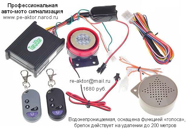 Также в наличии имеется авто-мото-велосигнализация (сигнализация для скутера, мопеда) попроще (без брелка) с датчиком наклона/удара, громкостью сигнала 100дБ и независимым источником питания (батарейкой на 9 вольт).