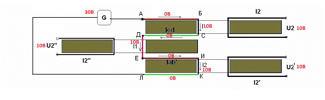 Ну пока не ставить третьего сердечника, то все будет так как я нарисовал. А вот между двумя сердечниками на првод уже что то падает. Между вумя. Тоесть они работают синхронно. Значит должна быть магнитная связь между сердечниками. Но это надо проверить...