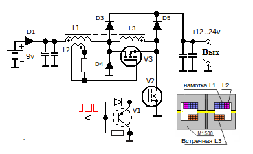 Могу еще если интересно несколько способов нарисовать с уменьшентем или увеличением индуктивности на обратном ходе.Питание естественно однополярные импульсы