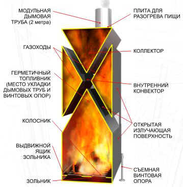 угумс. похоже на правду. только зона дожигания поболее должна быть. + рубашка водяная чтоб снять тепло. вроде так.
