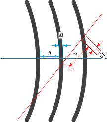 Заметим, что в зависимости от того, вдоль голубой или вдоль красной линии смотрит наблюдатель, он видит разную картину и в отношении частот (расстояния a и b отличаются), и в отношении протяженности самого уплотнения (a1 и b1 разные).