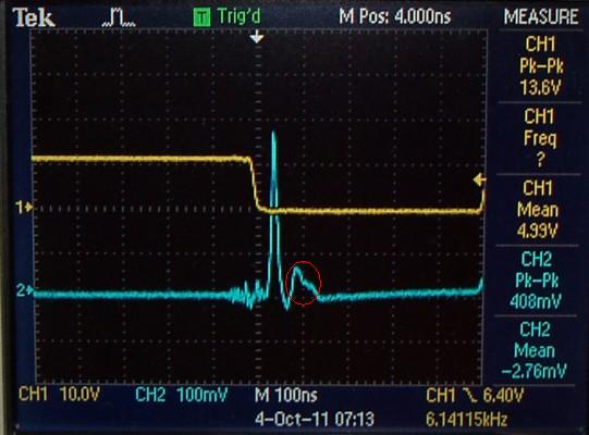 Возможно по осцилофограммам удастся понять, от чего появляется эффект. Он связан с ферромагнетиком и противодействующим полем второй катушки.