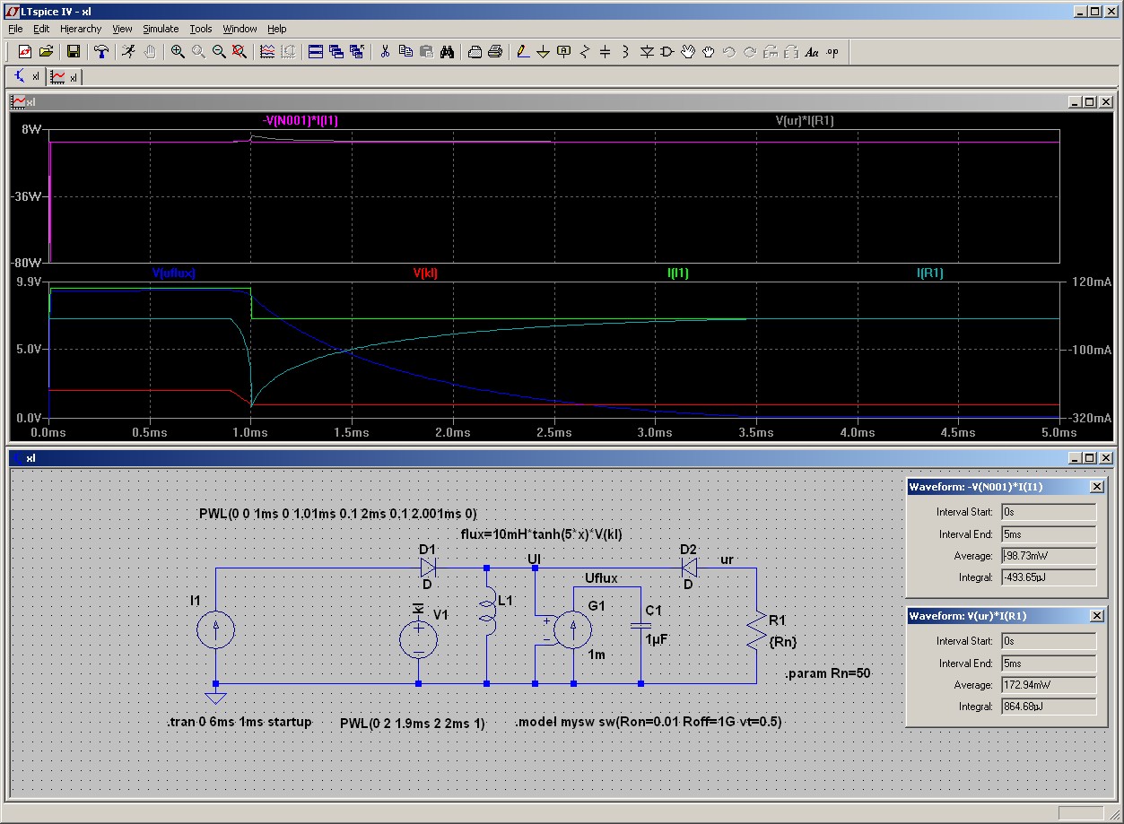 вот еще интересная модель - реальная катушка с гистерезисом и насыщением