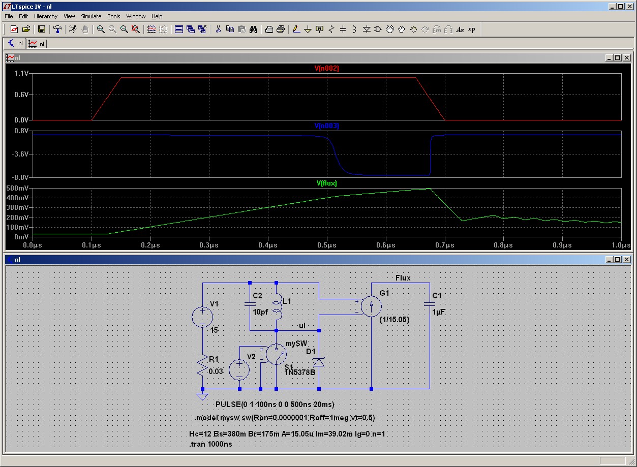 но очень интересная модель - Flyback на реальном сердечнике