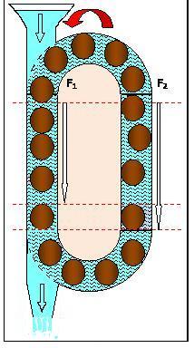 Если считать условно шарики невесомыми, то образуется достаточно мощное усилие архимедовых сил для привода смеси вверх.