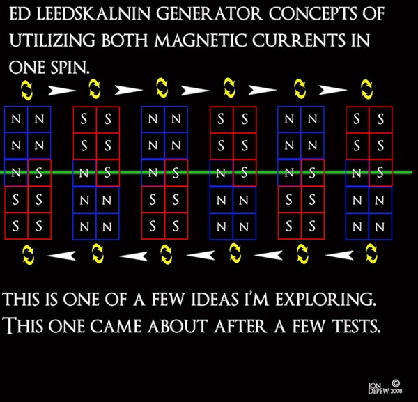Полагаю, из постоянных магнитов по периметру устройства формируется непрерывный магнитный поток в форме колебаний, подобных в SEG.
