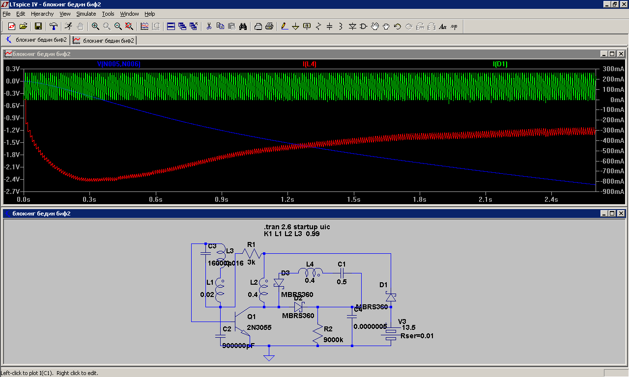 На этом рисунке хорошо видно , как импульсы блокинга "разгоняют" ток заряда конденсатора(аккумулятора) до значений много больших тока потребления самим блокингом. Таким образом , ток заряда аккумулятора вполне может быть больше тока потребления.