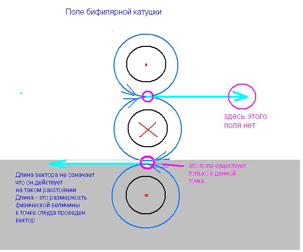 и еще-в твоем рисунке на катушку в прмежутке между встречными надо ни какая не бифилярка а обычная катушка....разве что бифилярка Теслы где витки в одном направлении-