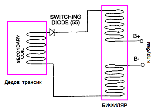 Мейер вообще хитрый жук, диод поставил. Типа, импульсы-импульсы, а на самом деле постоянка.