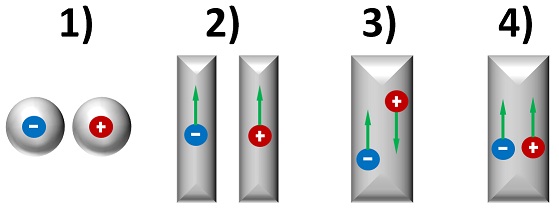 3) Классическое электричество. Положительные и отрицательные заряды движутся навстречу один к другому. Это те же стат заряды, но в динамике и в гармоническом соотношении. Второе название - гармоническое электричество. Если "+" и "-" присутствуют на разных обкладках конденсатора, то в катушке (проводе) они находятся рядом. Продольное и поперечное размещение.