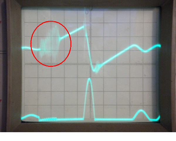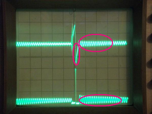 Дед Ваня, ЭТИ кракозябы появляются при минимальной длительности импульса, ниже 4 А, импульс не получается. Вообще такая Хрень вылазяет. А когда длительность импульса увеличиваю, Хрень начинает исчезать. Но всё равно есть, мало-мало.