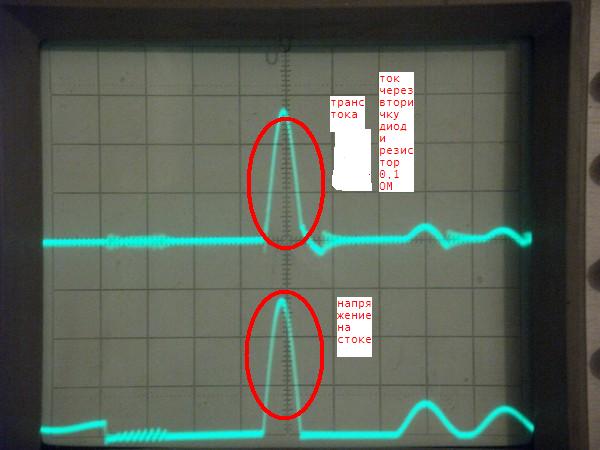 А вот ЭТО? Шо за Кракозябы??? Это ток между ёмкостью и индуктивностью первички??? После того как транзистор закрылся?