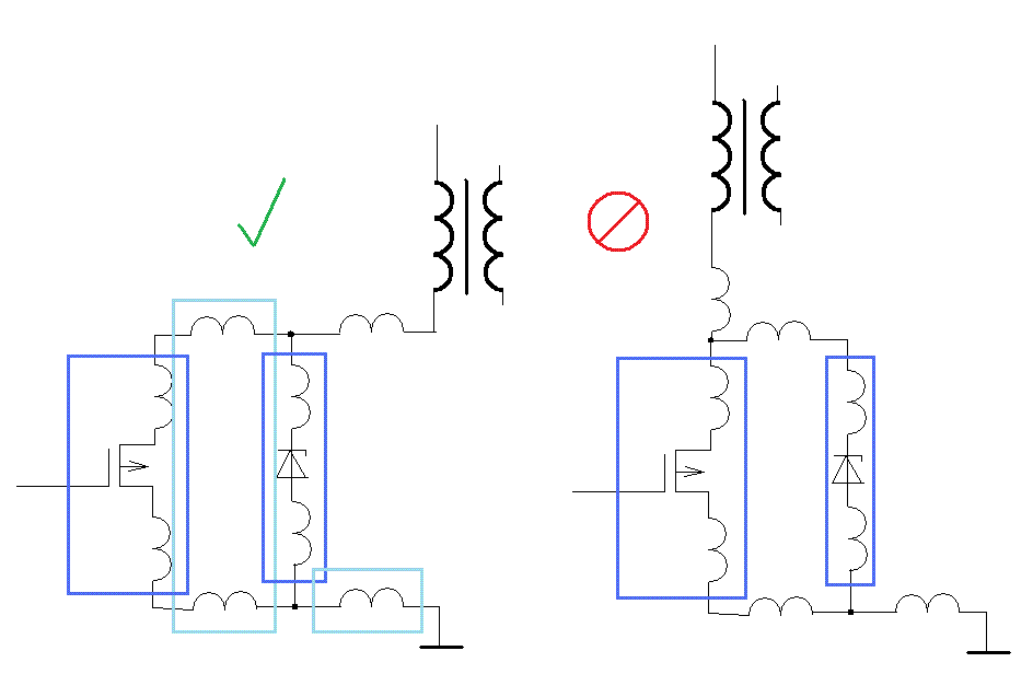 Голубое - нужно сокращать. Синее - внутренняя индуктивность прибора.