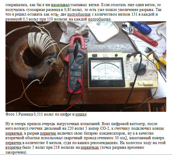 Константин,- с прошлого года пытался сделать данную конструкцию трансформатора и в этом году практически решил ее, я подтверждаю, что эксперимент проведенный им достаточно чистый. Он получил нужный эффект и смог самостоятельно разобраться как в тонкости настройки, так и частично понял принцип... Думаю для многих его опыт послужит толчком для собственных изысканий.