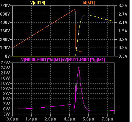 Увеличиваем участок выключения и смотрим- ток наезжает на напряжение