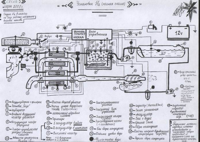 В 1994 году я начал работу по снижению СО авто и котлах, начал с ферритов. Был результат не значительный 10-20%. Затем применил многополюсный кольцевой магнит (4 полюса)и в 1996 году, расположив его северными полюсами по движению топлива поместив на поверхность подающего топливопровода и получил значительный результат по экологии и экономии топлива. В 1999 году в статье рег.№ 2050 Киев "Энергия Природы которой не видно, возможности практического использования", где давались некоторые объяснения происходящим процессам и полученным результатам. В 2001 году был получен патент Украины на автоактиватор горения № 35172А. Достижение результатов ни кого не интересовали (причины две-воровство органического топлива и давление топливных магнатов). Далее я применил тлеющий разряд (плазма) с обеспечением потока воздуха отрицательно заряженными ионами в дальнейшем ионоозонатор. Необходимо учесть-озона подавать в камеру сгорания в больших дозах нельзя особенно там где присутствует в топливе СЕРА. Понятна химическая реакция - серная кислота на выходе, как получилось в Донецке на котлах. Основное в данной технологии-магнитолазерная обработка (http://ramsey.boxmail.biz). Модуляция полевых структур, куда входят электронные копии катализаторов внесенные в магнитный поток и в импульс, дают существенную экономию с полной экологической чистотой воздуха. Вчера, т.е. 11.05.05 на автомобиле "ЛЯНЧА", мы ехали без топлива, горел воздух. Машина двигалась по ровной местности, а в гору - заглохла. Не хватило мощности, т.е. обработанного воздуха. Установка "ПАРУС" где расположен ионоозонатор и маг-лазерный блок, препятствует расчитанному прохождению воздуха. Лазер на базе светодиода должен иметь угол падения 60 градусов и помещен в торроид в центр отверстия в нулевое пространство. Диаметры магнитных колец из неодим-железо-бора имеют разные расчитанные диаметры от мощности двигателя и иметь четыре полюса по плоскости. Намагничивание обычное до 1,5 Тесла. Расстояние между торроидами роли практически не играет, т.к. векторные силовые линии распространяются на (приблизительно 300мм.), компасс покажет. Необходимо увеличивать объём прохождения воздуха без сопротивления. Не исключен вариант применения турбины. Можно отказаться от оиноозонации,т.к. это происходит при плазме свечи и, отказаться от того топлива, которое необходимо при запуске, т.е. поместить разряд в камеру сгорания. Вот вкратце технология, которую пора использовать. Если будут вопросы-отвечу по эл. почте. e-mail:ramsey@nm.ru Наша задача сохранить землю,воду,небо и воздух. Если кому интересно, вышлю схему реактора от 12v- на воде.