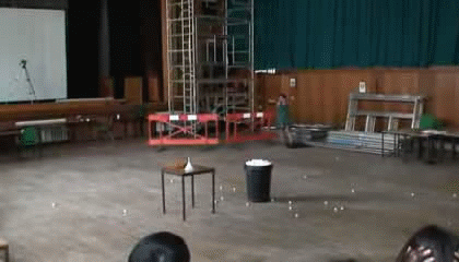 Возьмем корзину наполненную теннисными шариками, и поместил в неё бутылку с жидким Азотом. Азот закипел и взорвался. В момент взрыва корзина не только теряет в весе, но и реально взлетает.