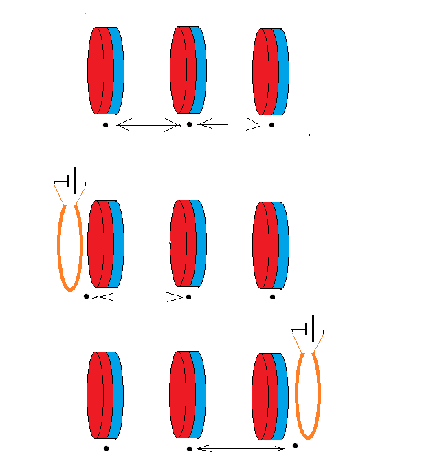 На рисунке три магнита. И один электромагнит. Я пометил те самые точки приложения сил.