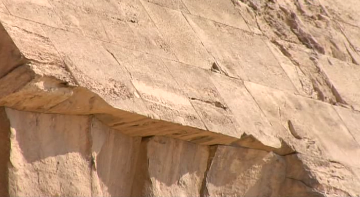 "Идеально подгнаны лишь внешние грани. Со стороны облицовки. И сделать это очень просто. Внутри же блоки ни разу не подогнаны. Это хорошо видно там, где облицовка была снята или отвалилась. А ещё тяжёлые блоки имеют тенденцию ПРИТИРАТЬСЯ ДРУГ К ДРУГУ за длительное время."