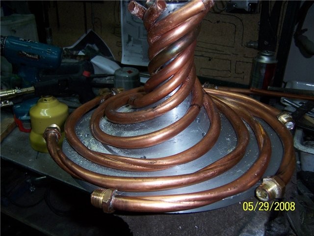 Нужен для него теплообменник. Поток тепла большой, перепад температур должен быть минимальный, для этого только один путь- максимальная площадь теплообмена и минимальная толщина.