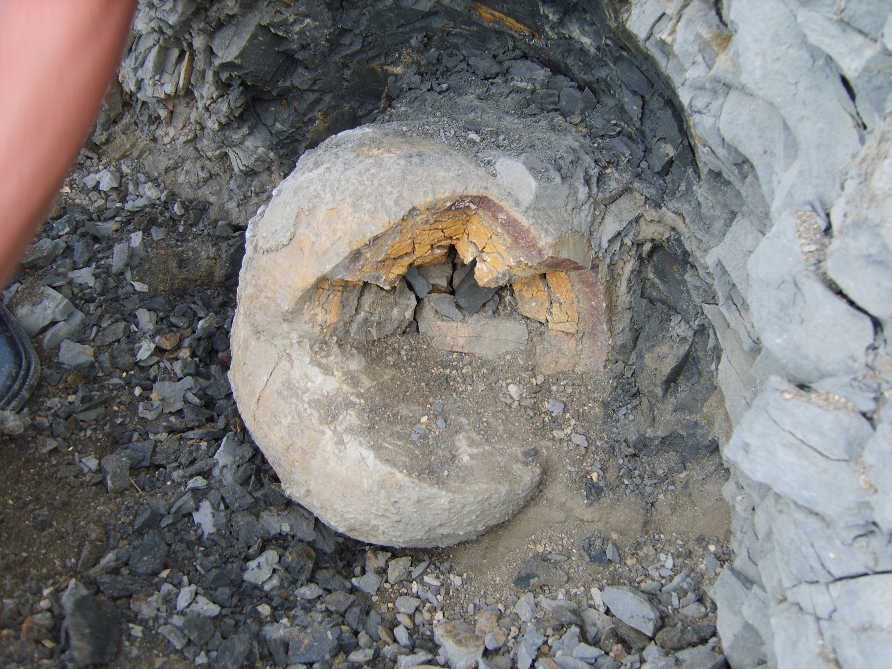 Шаровые конкреции образуются на глубине в пластовых условиях, при определенных термобарических условиях в пластовых флюидах происходит электрический разряд образующий шаровую молнию холодного ядерного синтеза, которые и образуют шаровидные конкреции... С позиций тектоники плит конкреции выходят на поверхность через миллионы лет и при разрушении пласта более крепкие конкреции остаются на поверхности!!! Но конкреции образуются и сейчас в океанах и горной породе на поверхности, но маленькие, в железо-марганцевых конкрециях нашли молоток, болты, пробки от пива... [ссылка]