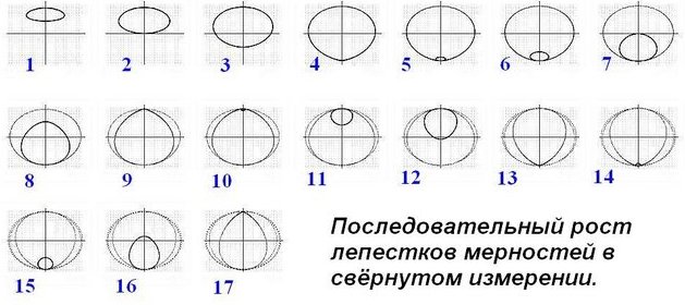 ..... показаны кривые непрерывного счёта по углу j до значений углов сегмента jo = p, 2p, 3p, 4p,...Такие значения углов соответствуют переходам на другие листы (см. рис. 4) n-мерного риманова пространства, которые моделируют процесс расслоения гиперпространства на подпространства (многообразия) различной ориентированности.