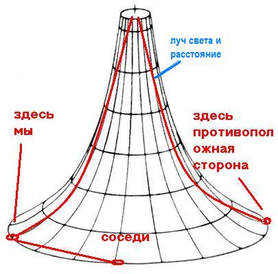 Мы видим что удаляемся от нее. Хотя соседние города остаются на том же расстоянии. То есть стенка пузыря не раздувается.