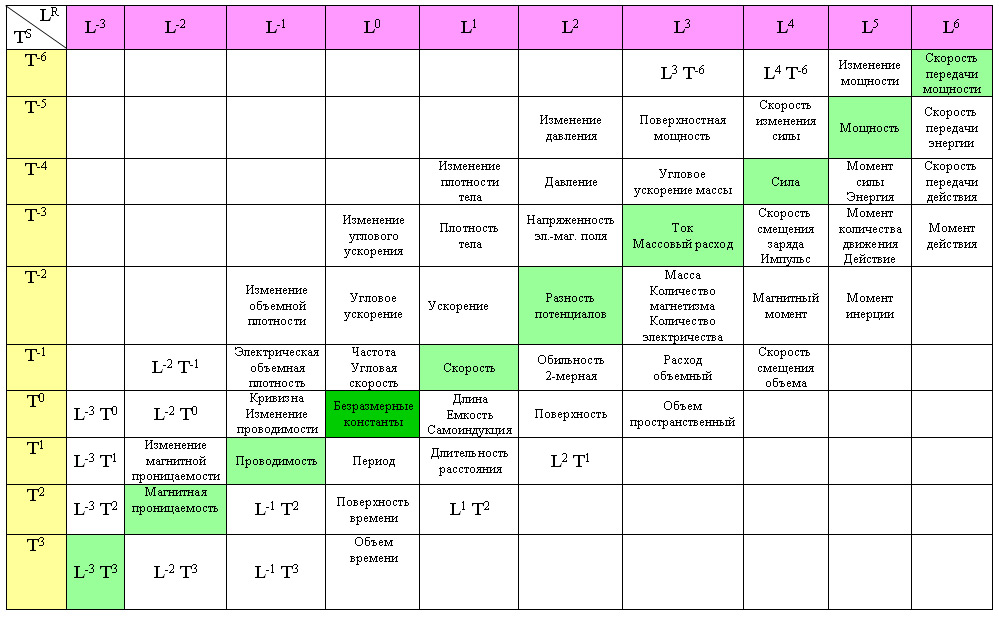 А вот для связи пространства времени и пространства ЭМ поля табличка очень даже подойдет. Нужно только решить что там обозначает L - это не наши метры.