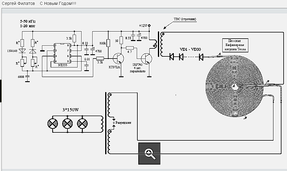 Или имеет значение только что после строчника именно эта плоская катушка Теслы ?