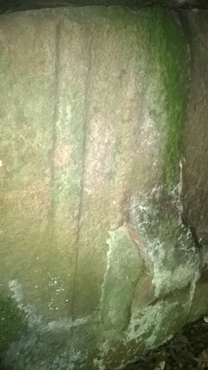 ...на фото уступы и два камешка...камешки размером 2м х 1м х 1м...их вполне можно отнести к мегалитам, кромлехам и пр...