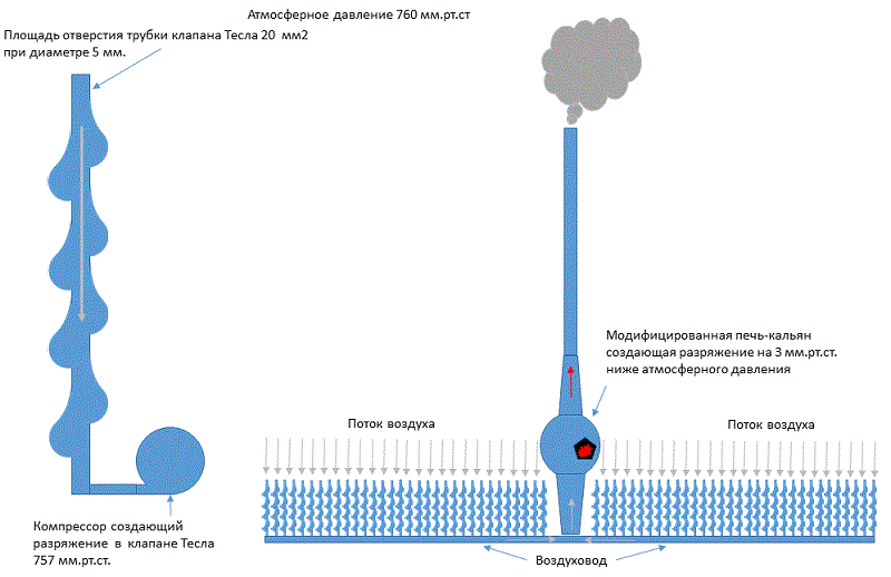 На рисунке с права я установил мини печку которая заменит компрессор и создаст перепад давления по отношения к атмосферному давлению в трубках 3 мм.рт.ст.
