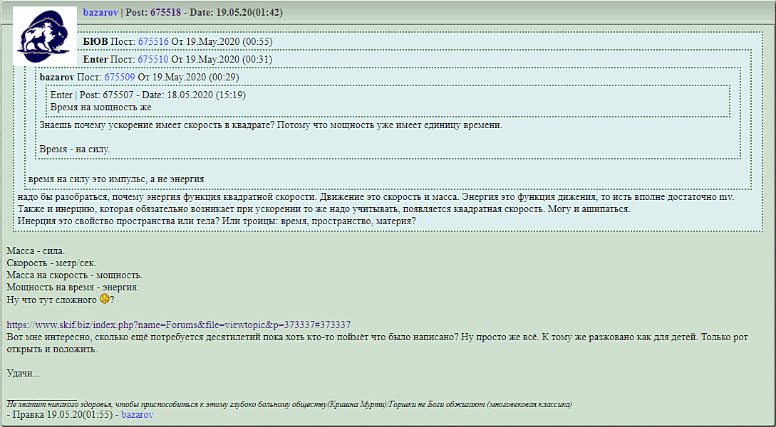 texnik | Post: 675544 - Date: Tue, 19 May 2020 (05:51) А сила откуда берется? Ты фильм "Отец солдата" смотрел, что там грузин говорит? "Сначало пахать, а потом сеять" Так вот, без энергии ни какой сили не будет чтобы пахать