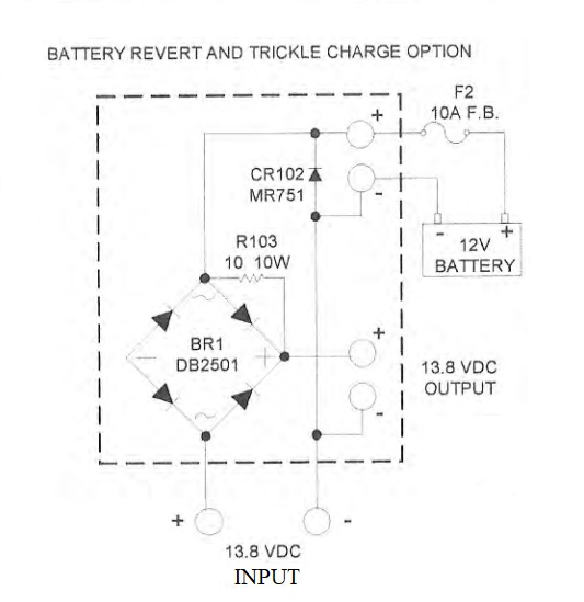 А для чего там мост нужен, ведь два диода слева никогда не используются? И кстати, напряжение на выходе будет не 13.8, а 12.8 В за счет падения напряжения на диоде. А при питании от батареи напряжение на выходе еще меньше, для указанного на схеме номинала будет 11 В.