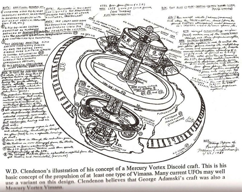 « Сильным и прочным должно быть его тело, сделанное из легкого материала, подобное большой летящей птице. Внутри следует поместить устройство с ртутью и с железным подогревающим устройством под ним. Посредством силы, которая таится в ртути и которая приводит в движение несущий вихрь, человек, находящийся внутри этой колесницы, может пролетать большие расстояния по небу самым удивительным образом. Четыре прочных сосуда для ртути должны быть помещены внутри. Когда они будут подогреты управляемым огнем из железных приспособлений, колесница разовьет силу грома благодаря ртути, и она сразу превращается в жемчужину в небе.»