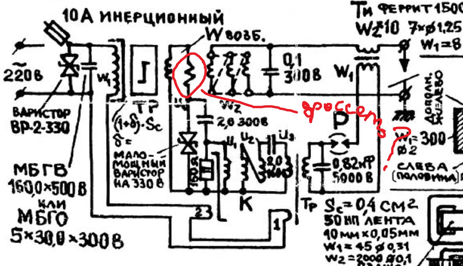 Не было там ни какого дросселя....а это Палыч резистор накропал, ограничительный...хотя он там в хер не уперся, потому как ток кз этой обмоточки из провода 0,1 и так несколько десятков мА....
