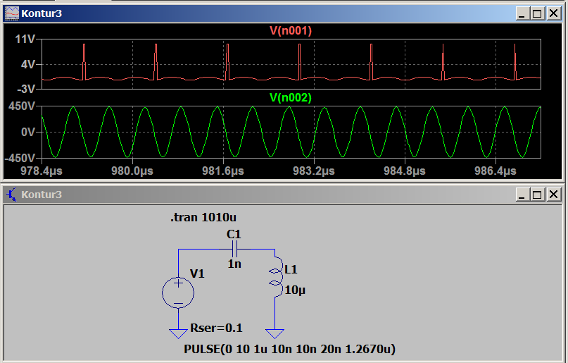 Поэтому прекрасно знаю, что все импульсы возбуждения ниже резонансной частоты приводят к синосуидальным колебаниям. А частота выше будет давать искажения пока не придет к тому же виду, что и подается на контур с незначительными искажениями. И не важно какой колебательный контур, простой, бифилярный, трифилярный или еще какой.