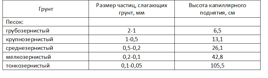 Высота капиллярного поднятия в однородных несвязных грунтах (по А. Аттенбергу).