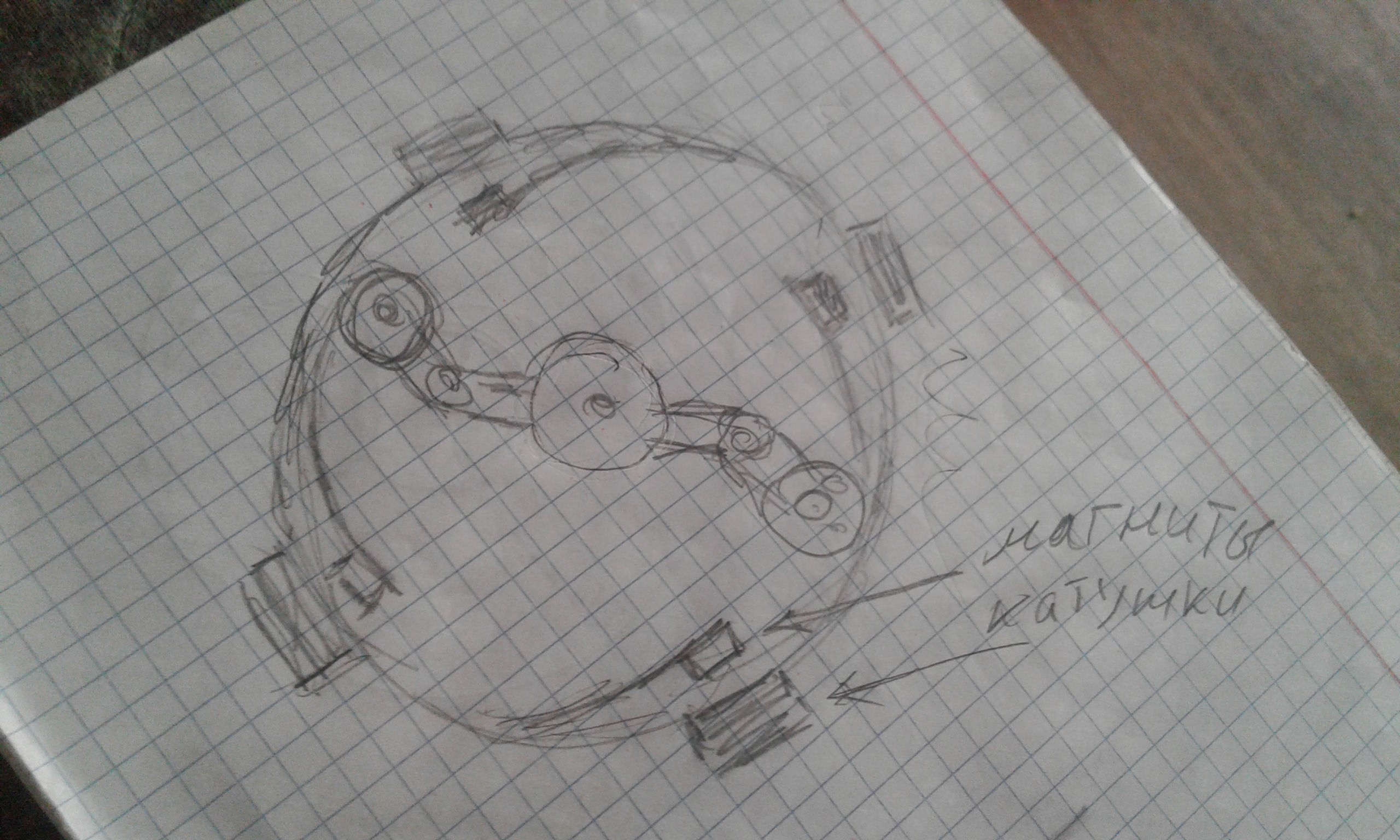 При чём здесь маховик? Каким образом мазовик буде двигать статорные рычаги?