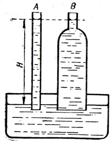 Капиллярный подъем воды в трубке А (рис.) равен Н. Диаметр шейки трубки В равен диаметру капилляра А.