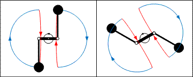 Принцип действия основан на перемещении грузов во взаимно перпендикулярных