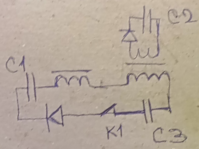 Никому не скажу про энергобалланс в такой схеме перелива заряда конденсатора из одной обкладки в другую. Транс 1к1, изначально был заряжен С1. Конденсаторы С2 и С3 изначально пустые.