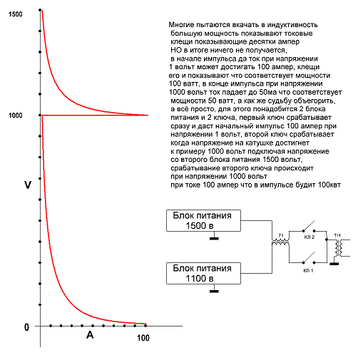 Может Валера может-если использовать её как БП. Вообще сделать можно на чём угодно и даже на ВВ трансформаторе 50Гц. Сейчас делаю на телевизоре.Много времени занимает подготовка экспериментов.Если изучать "наследие предков",то там и про защитный разрядник есть и про бифиляр и про многое другое-например какие параметры импульсов должны быть,чтобы "засверкало"от переизбытка энергии. Индукционка таких параметров в генерируемых ею импульсах не имеет.Там же не дураки в КБ сидят.Сделайте пилу естественно не совсем обычную и будет Вам счастье.И никто даже не заметит разницы-плита,как плита-а повторить не у кого не получится. Бифиляр выигрывает в силе эффекта,но проигрывает обычной рядовой катушке в максимально допустимом генерируемом напряжении.Для рядовой катушки разрядник в принципе не так важен-излишки энергии она сбрасывает в окружающий воздух в виде рукотворных молний-тоже своего рода защита. Суть эффекта накопления энергии в создании большой плотности зарядов на маленькой длине толстого провода.Тесла назвал это эффектом "сврхзаряда".Именно с него он начинал свои исследования (при включении рубильника линий электропередачи постоянного тока возникал именно этот эффект и гибли люди).Именно опыт его с подковой показывал возможность создания больших напряжений в проводе,где по классике должны быть максимум мизерные доли вольта.