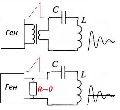 Олег, при последовательном КК, источник должен иметь низкое выходное сопротивление, и после импульса цеп LC не размыкается...