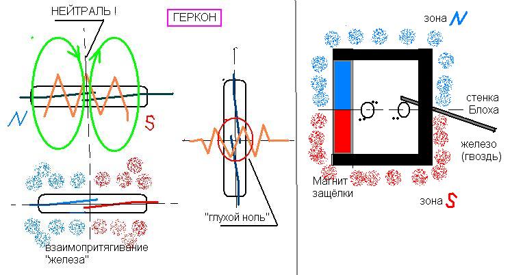Чтобы геркон НЕ срабатывал от "0"зоны нужно расположить саму колбy Г. на 90°.