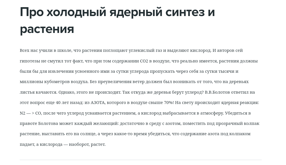 Чувак не нервничай, я же не сам это придумал. Да бывает что и разрывает, но в основном-то нет. Больше читай и расширяй свой кругозор тогда может и не придется нервничать почем зря. Не хочу сейчас искать опыты с химическими анализами, почвы растений и семян. Там тоже обнаружен холодный ядерный синтез некоторых веществ. Я лиш цитирую что когда-то читал. Верить в это я никого не заставляю, Но разве ты не согласен с тем, что растения являются живыми организмами?