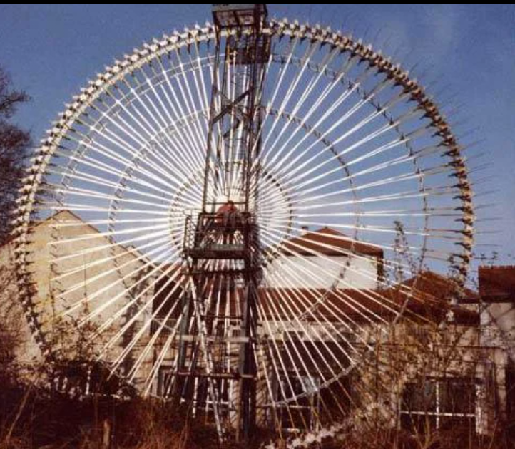 Бутылки просто закрывают пружины от атмосферных осадков, а так же закрывают пружины от попада5ия в них мусора носимого ветром. У этих бутылок нет дна. Это пластиковые бутылки с отрезанными донышками. Высота этого колеса не настолько велика чтобы говорить о разнице давлений. Альдо Коста не держит в секрере устройсиво своего колеса. В интернете есть полный расклад механизма для перемещения грузов, по этому нам не нужно гадать на кофейной гуще, и не нужно ничего разгадывать. Все устройстао есть в свободном доступе. Просто бери и делай, если некуда девать 200000$